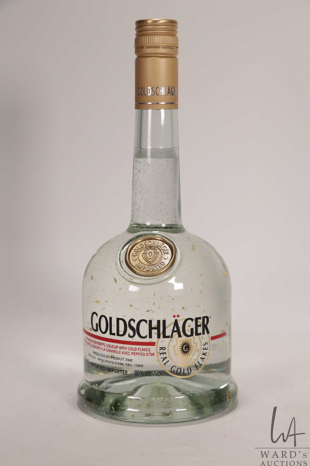 Goldschlager/ Cinnamon Schnapps Liqueur with gold flakes/ 750ml/ 40% ABV Note: Alcohol cannot be ins