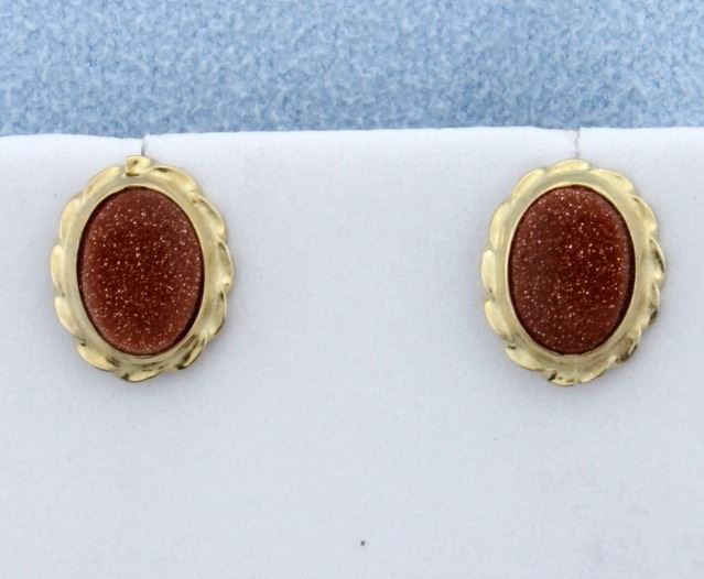 The oval goldstones are 8mmx6mm. Earring is 1/2" long with friction backs. 1.3g
