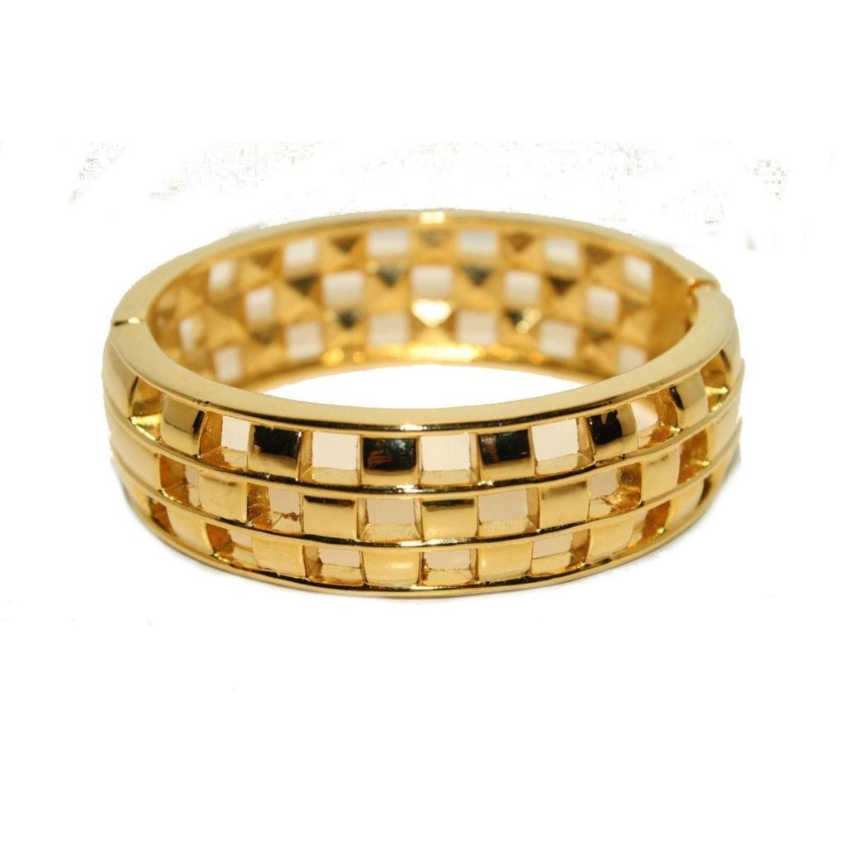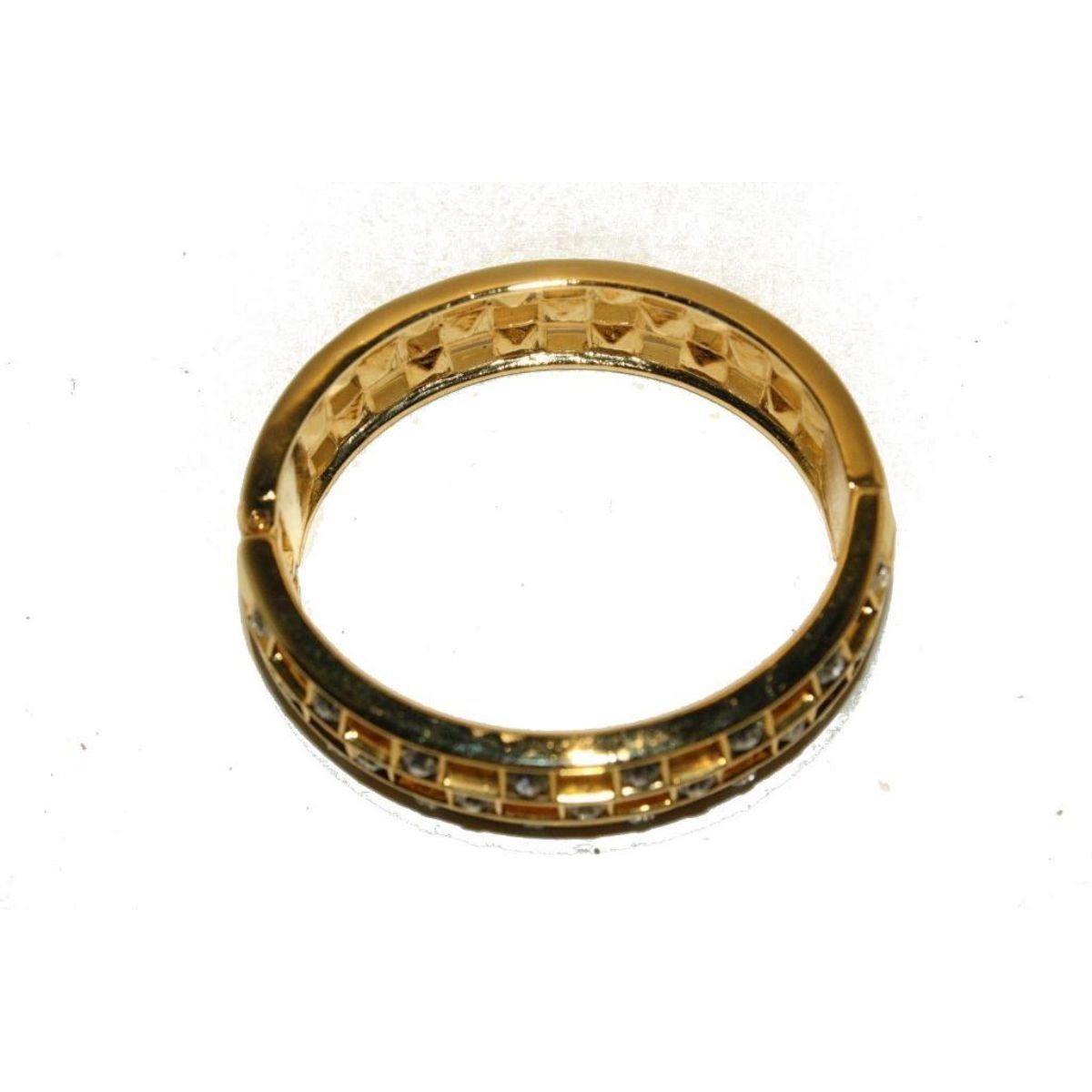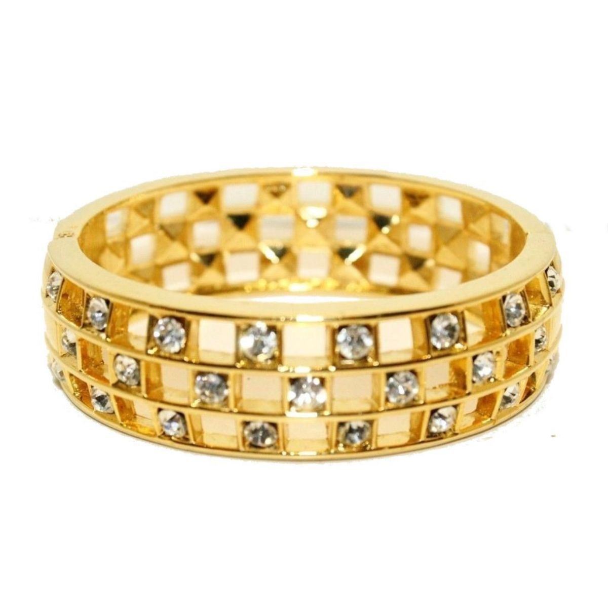 Goldtone & clear rhinestone bangle hinge bracelet. Interior 6 3/4". Width 3/4". - 10107-040618-EB-42124