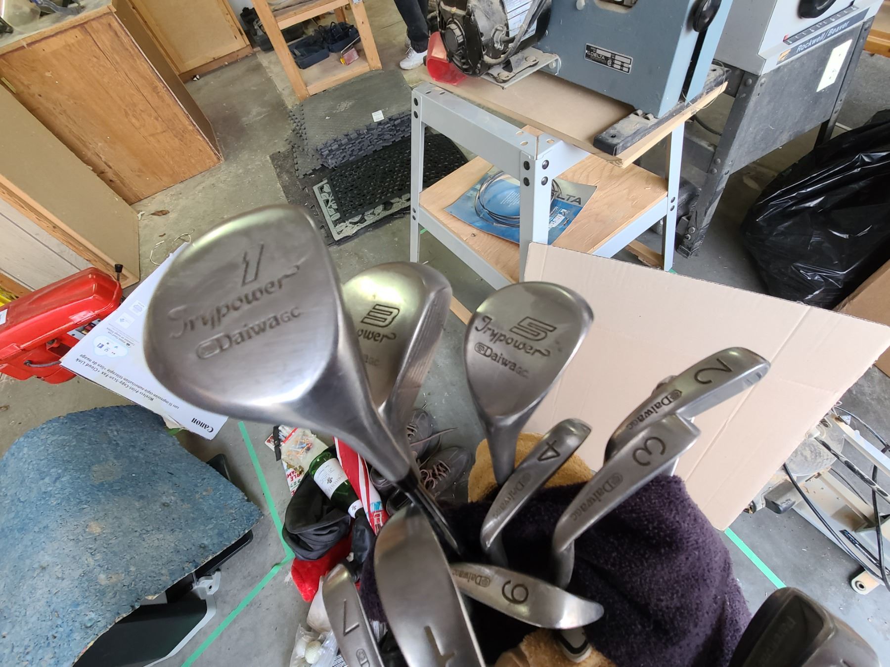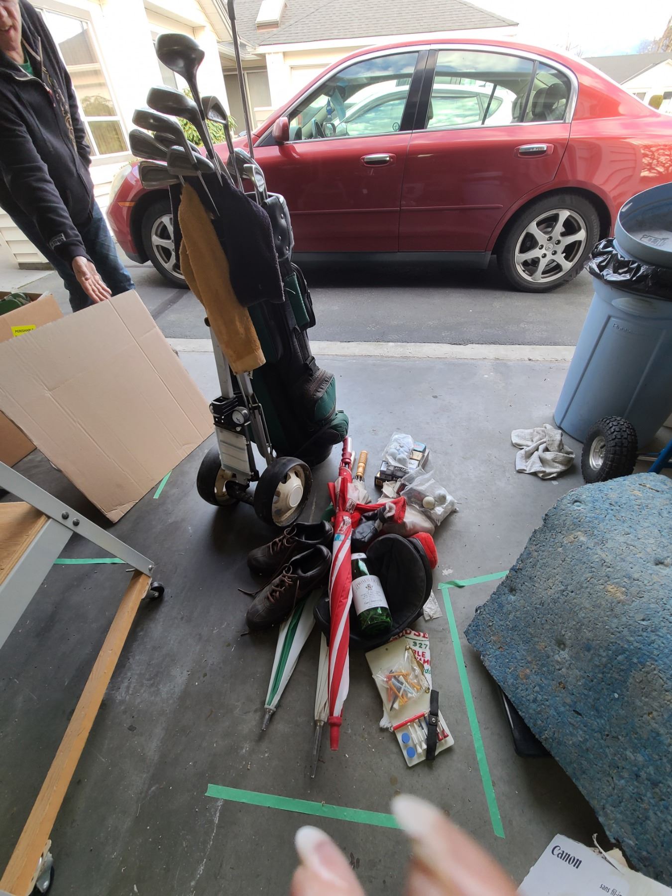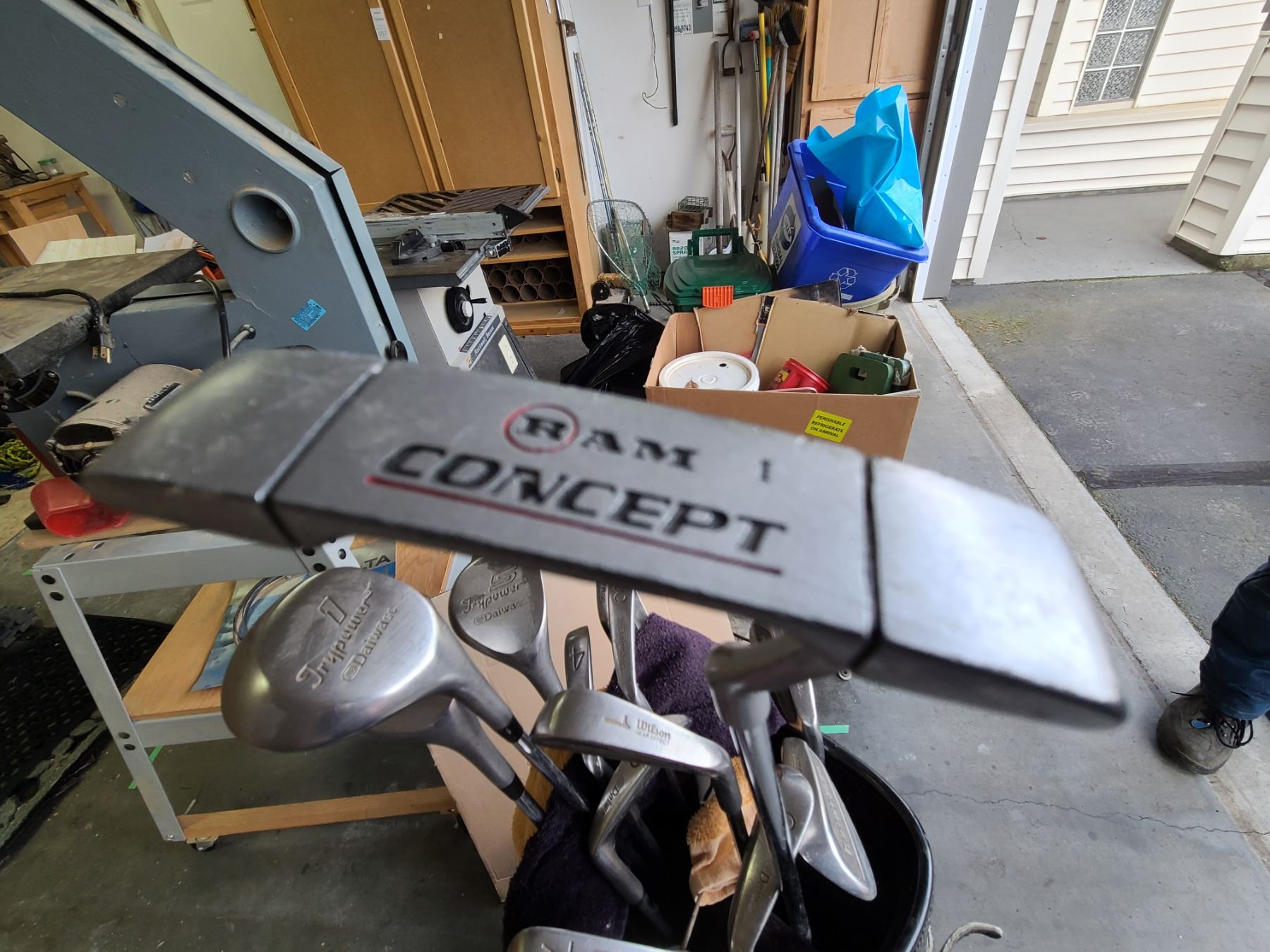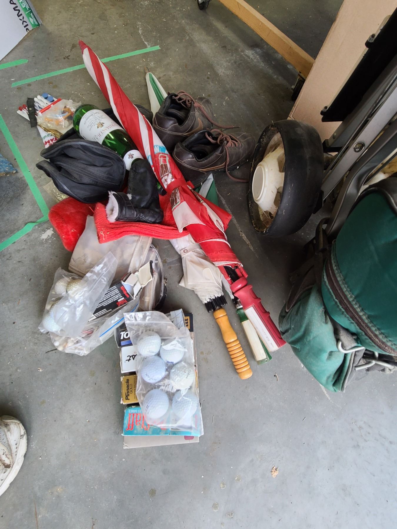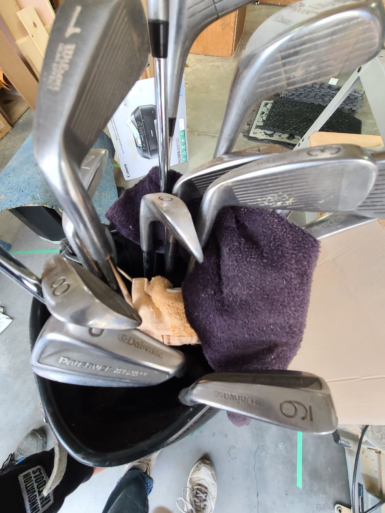 Golf bag with 14 clubs and assorted golf items. Pickup at 9 am.