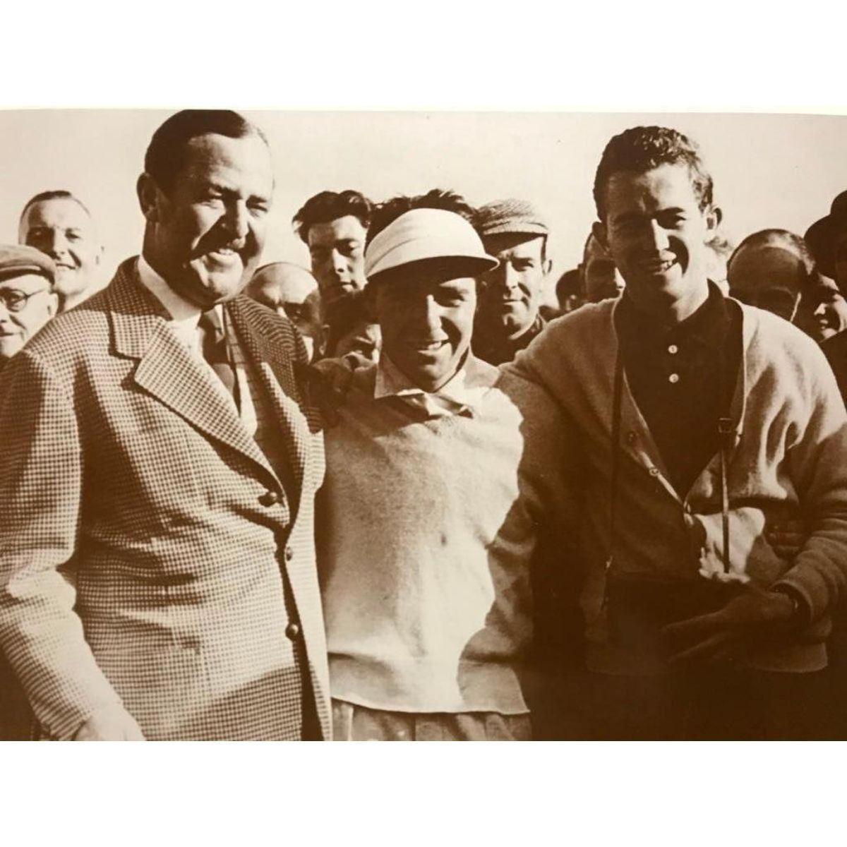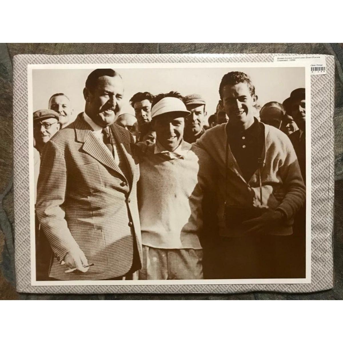 South African Golfing legends Bobby Locke & Gary Player, 1956 sepia-tone photo print. Created inthe early 1990's for The American Heritage Galleries, printed on cardstock, in original gallery packaging. 11" X 14" Arthur D'Arcy "Bobby" Locke was a South African professional golfer. He is generally regarded as one of the greatest golfers of all time. He won the British Open four times and 15 PGA Tour events in total. Gary Player DMS, OIG is a South African retired professional golfer who is widely considered to be one of the greatest golfers of all time. During his career, Player won nine major championships on the regular tour and nine major championships on the Champions Tour.