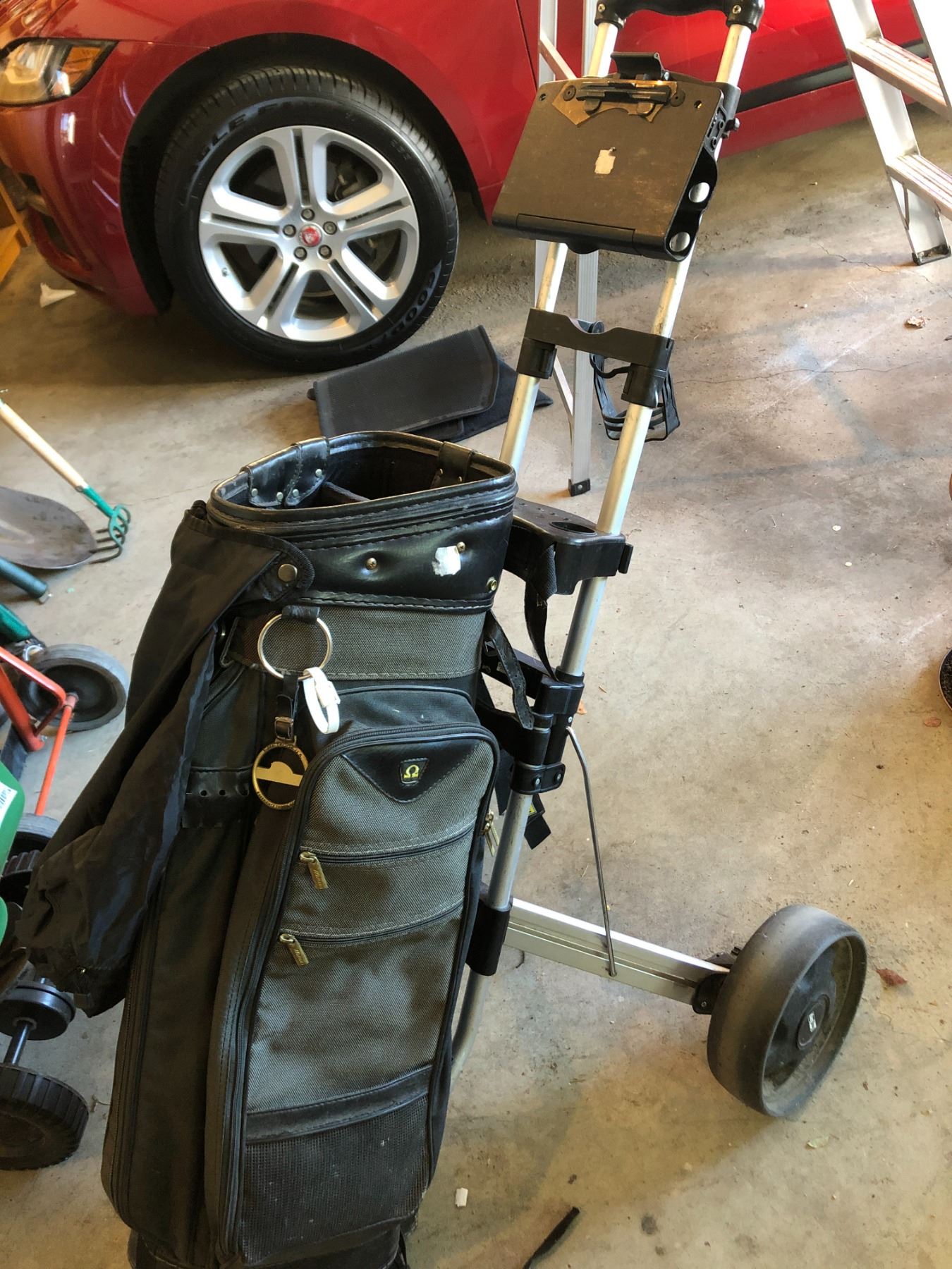 Bag with bagboy cart - electric ultimate putting system 8 feet long green in working condition