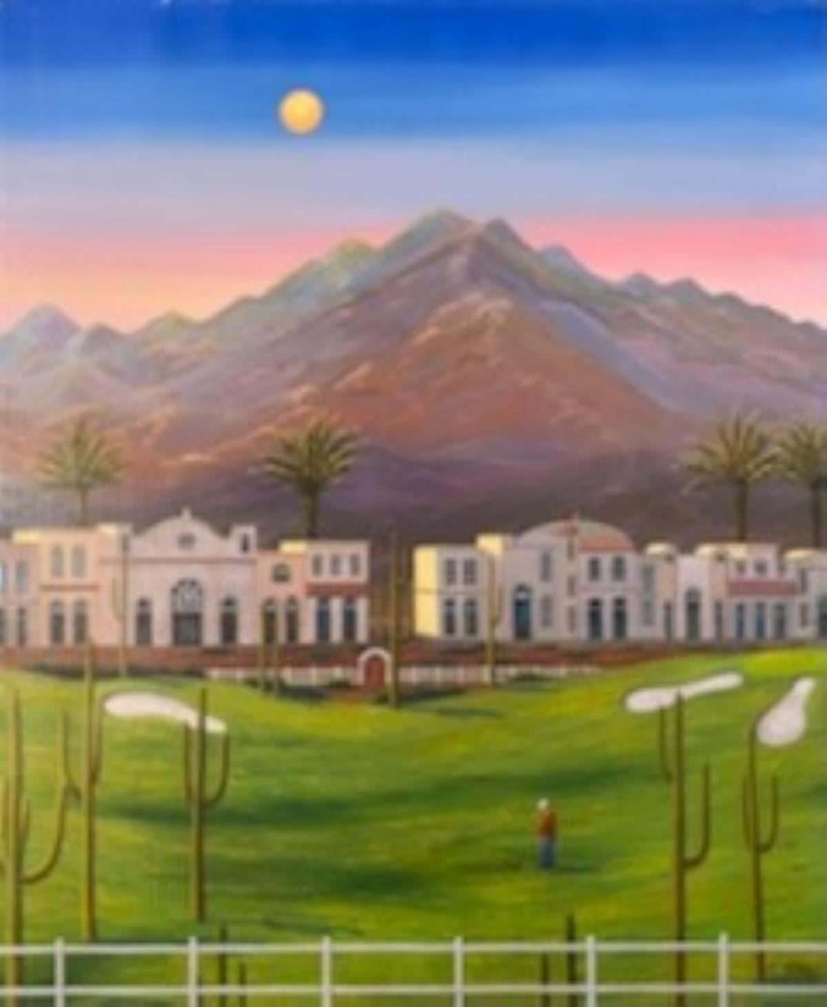 A golf landscape from one of Fanch's American Tours, this 20x24" original on canvas comes with the artist's COA.