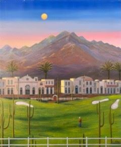 A golf landscape from one of Fanch's American Tours, this 20x24" original on canvas comes with the artist's COA.