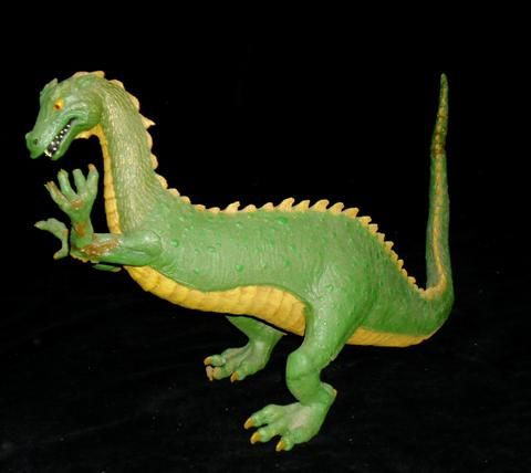 Goliath and the Dragon (1960) - A Samuel Arkoff production, this was the debut film of actor Mark Forest, who became an overnight sensation because of his muscular chest. This is a production made puppet and an original production casting dragon that was gifted to Forrest J. Ackerman. This is the villain of the title of the film, a vintage stop motion puppet created and animated by Jim Danforth. This film was his first screen credit. He was a contemporary of Ray Harryhausen and is one of the pioneers of stop motion animation, nominated for two Oscars and who worked on such films as The Time Machine, 7 Faces of Dr. Lao, When Dinosaurs Ruled the Earth, Willy Wonka, Diamonds are Forever and Clash of the Titans. He went on to become a leading matte artist creating backgrounds for such films as Conan the Barbarian, The Thing, The Never Ending Story, Day of the Dead, Friday the 13th, Flatliners, Body Snatchers and The Prophecy. Carlo Rambaldi, who went on the create E.T., also worked on the special visual effects on this seminal and important film. Foam latex with metal armature. 25" x 14" x 8". This item is oversized and will require additional shipping costs. Please email for shipping rates prior to bidding.