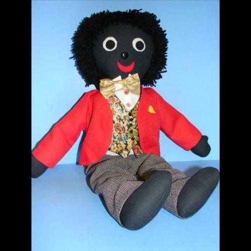 Goliwog Golly dressed in red jacket and tweed pants. Very good condition. 21" tall. Weight 1 1/4 lbs.