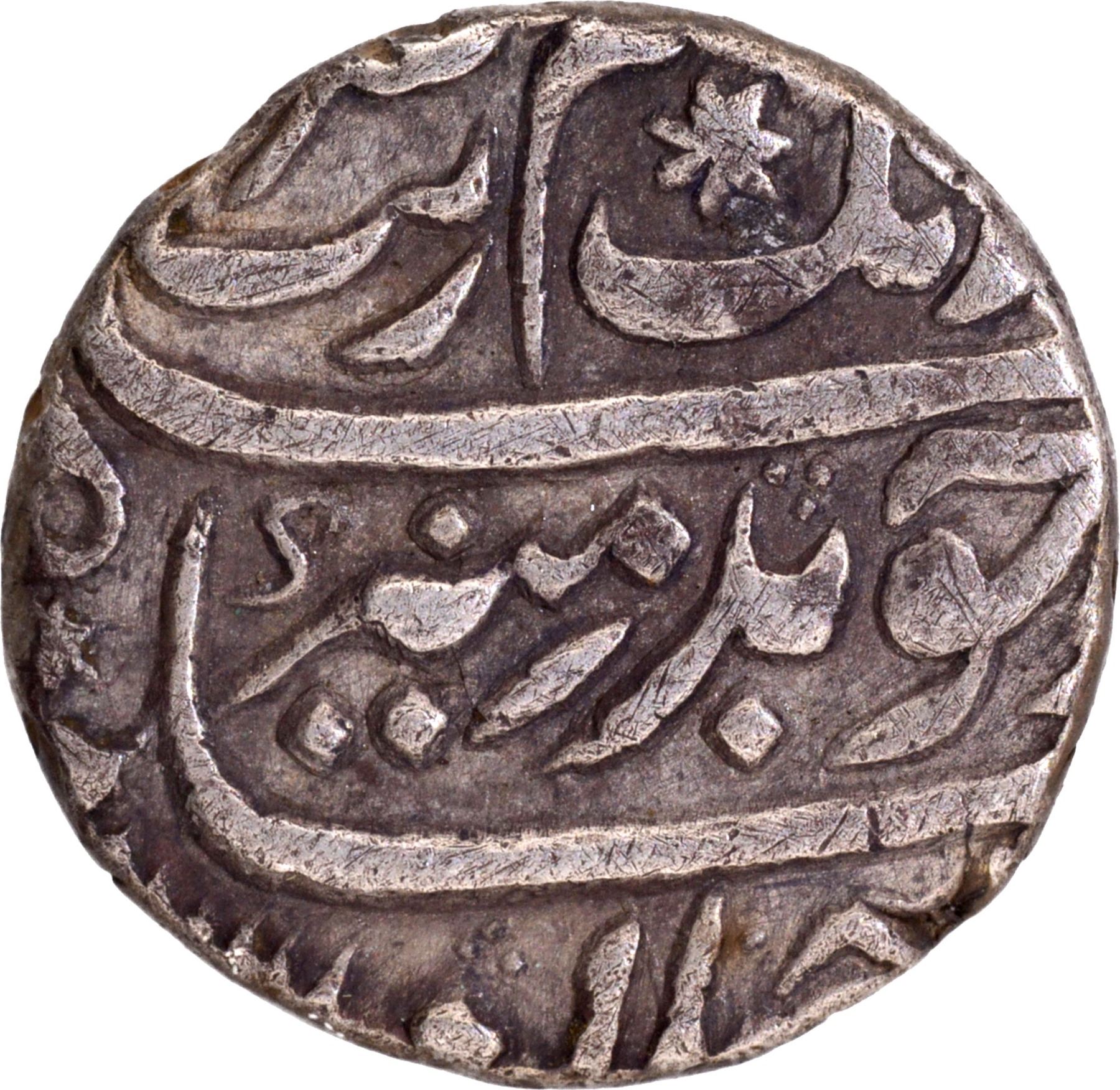 Aurangzeb Alamgir (AH 1068-1118 /1658-1707 AD), Golkonda Mint, Silver 1/2 Rupee, 21RY,Badr MunirCouplet,Obv:Persian legend Sikka zad dar Jahanchu BadrMunir, Shah Aurangzeb Alamgir,Rev: Persian legend sana 21julus zarb Golkonda at the bottom,5.70g, 18.53mm,(KM # 294.3),test mark, floral motifs, about very fine,Rare.