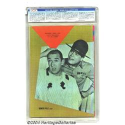 Gomer Pyle #2 (Gold Key, 1966) CGC NM 9.4 Off-white to white pages. Shazam! It's our favorite Marine. Even Sgt. Carter would be proud of this copy. It is the nicest CGC has certified to date. Overstreet 2003 NM 9.4 value = $70. Important notice: Heritage usually auctions material at the rate of 200-250 lots per hour. On some occasions eBay Live bid software or the Internet may not be able to keep up with the pace of the auction. We recommend placing a realistic absentee bid now as insurance to avoid disappointment. Occasionally the auctioneer may eliminate or reject an eBay Live bid, and the auctioneer may also reopen a lot after the close of the eBay live bidding (usually because we missed an audience bid), and may reject your bid even if it shows you as the winning bidder. By bidding via eBay Live, you agree that Heritage may award the lot to another bidder at its sole discretion under the circumstances described above or any other reasonable circumstances. Since eBay bids are not shown to us until we open the lot on the floor, we treat those bids just like floor bids. In most cases the floor responds before the eBay bid is presented to us, due to Internet lag time, so for consistency we have made it a policy that floor bids are always considered first over tie eBay live bids. Also please note that all Heritage lots purchased through eBay Live carry a 20% Buyer's Premium. Please make sure you read the Terms and Conditions before you bid.
