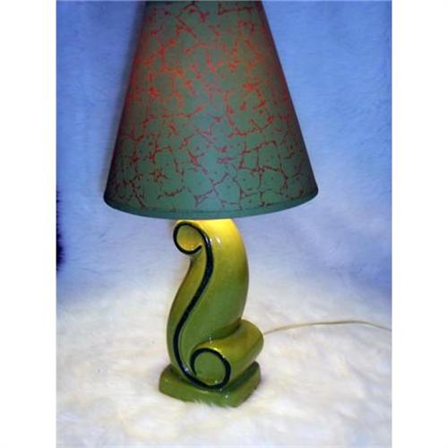 A fantastic midcentury modern lamp from the Gonder pottery company in excellent condition with the original matching shade.