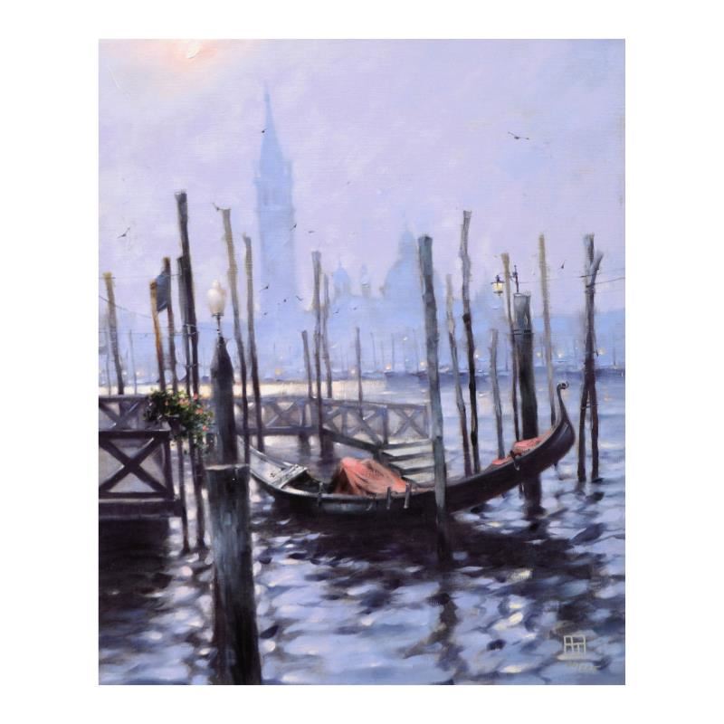 "Gondola at Evening Time" is a limited edition hand embellished giclee on canvas by Vakhtang, numbered and hand signed by the artist. Measures approx. 16" x 20" (image).