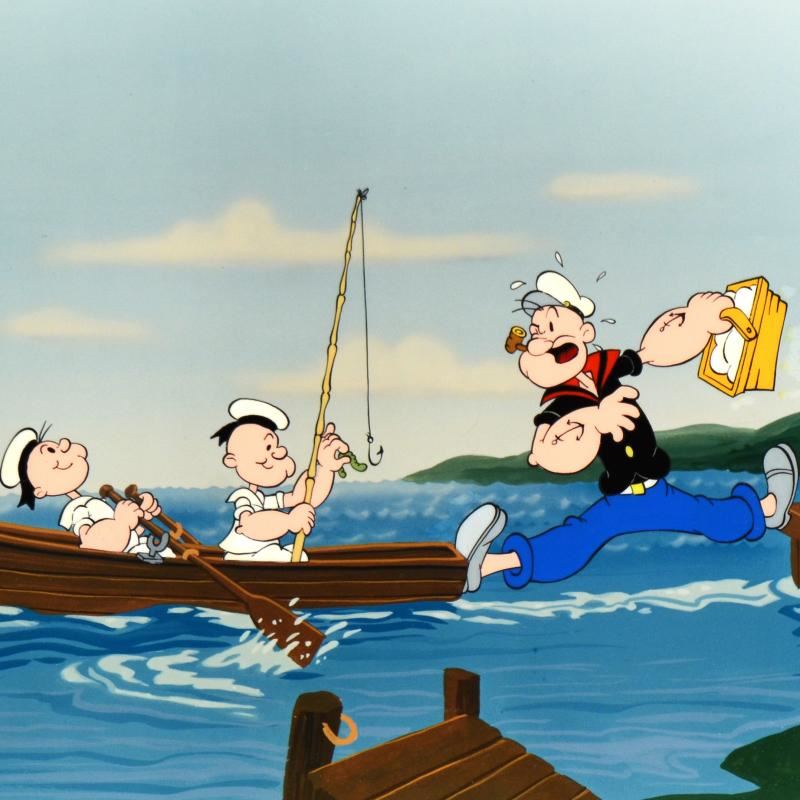 "Gone Fishing" is a limited edition hand inked and hand painted animation cel with background, numbered and hand signed by Myron Waldman (1908-2006). Includes Certificate of Authenticity! Measures approx. 14" x 12" (background), 10" x 9" (cel).