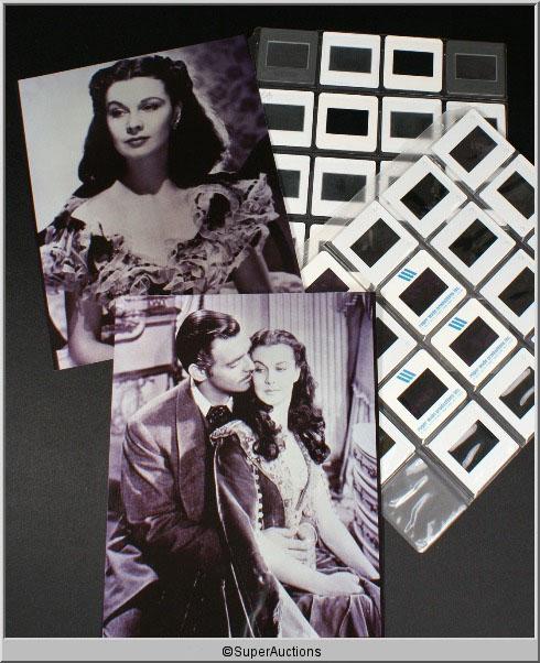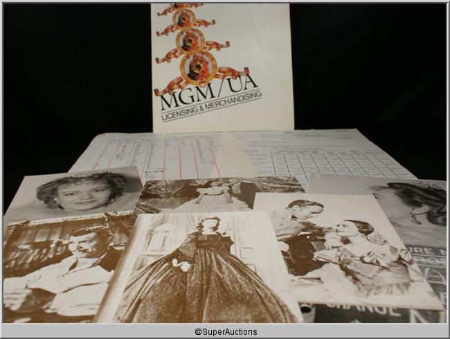 From the Max Factor Files / "Gone With The Wind" / Released January 17, 1940 / Selznick International Pictures / Starring: Clark Gable, Vivien Leigh, Olivia de Havilland, Leslie Howard, Thomas Mitchell and Barbara O'Neil / File contains (1) MGM/UA Pocket Folder, (2) 8 x 10 Black & White Photographs, (1) 7 1/2 x 9 1/2 Black & White Make-Up Test Photograph, (1) 5 x 5 1/2 Make-Up Test Photograph, (4) Gone With The Wind Postcards, / Max Factor & Co. Proposal for Rental Stock Wigs and Hairgoods, (25) 2 x 2 Negative Slides of Film Titles, Vivien Leigh, Clark Gable, Multiple On Set Scenes