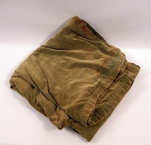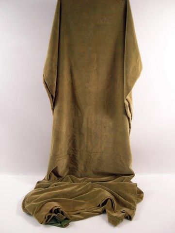 Who doesn’t remember the infamous curtains or “portieres” that adorned the windows and doorways at Tara in the all time great American classic movie “Gone With The Wind” (1939)? They held special significance, since some of them were used by Scarlett (Vivien Leigh) to create her famous “Curtain Dress”. In one key scene, after the pillaging of Atlanta, Scarlett tells Mammy (Hattie McDaniel) “You’re going to make me a new dress”, then jerks down some of the curtains, pole and all and drapes the material over her shoulder and shouts: “I’m going to Atlanta and I’ve got to go looking like a queen!” These are some of these actual original velveteen cotton moss-green curtains used in the production. They come from the collection of Vera Johnson who worked at the Selznick Studios during the years that “Gone With The Wind” was being produced. They have been in the possession of her niece, Zaz Clark for the past fifty years. The material has faded in over 70 years, but the original color can still be seen on the reverse side, and in the overlapping seams.