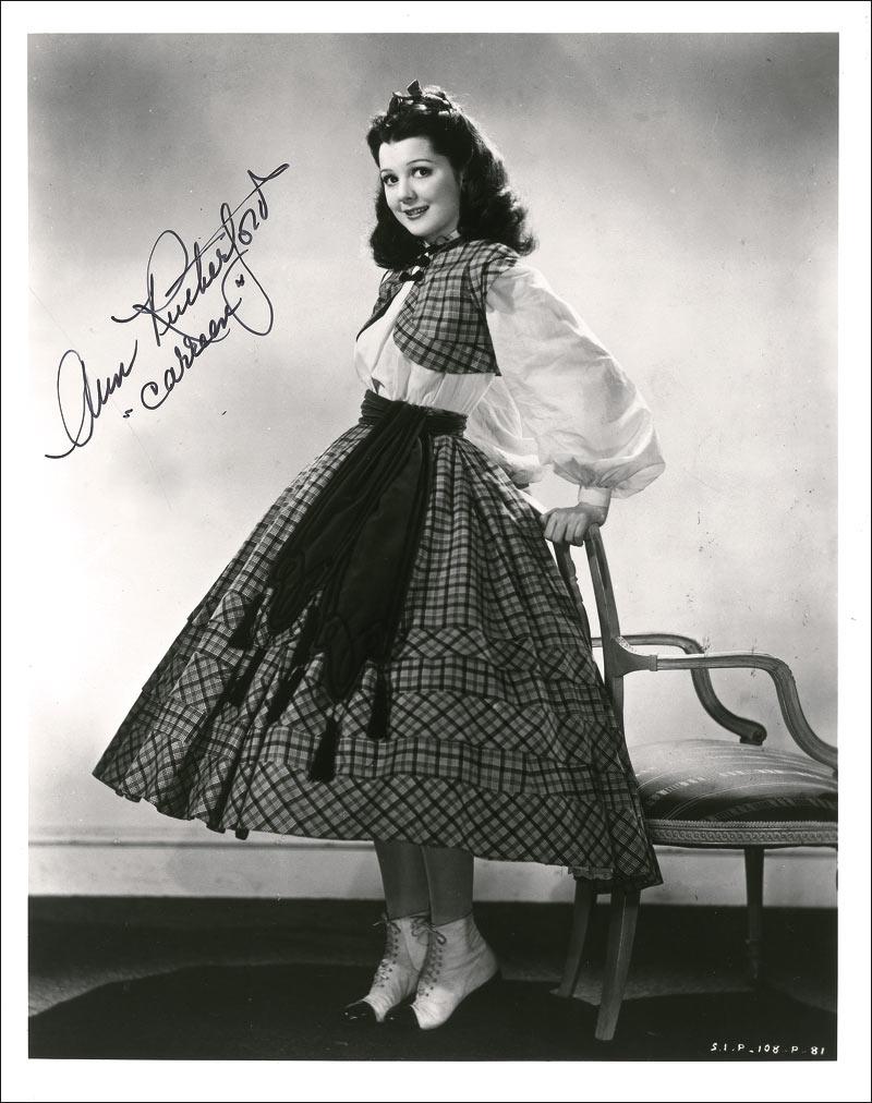 Glossy 8 x 10 photo, signed in black felt tip, “Ann Rutherford, ‘Careen.’” In very fine condition. Pre-certified PSA/DNA and RRAuction COA.