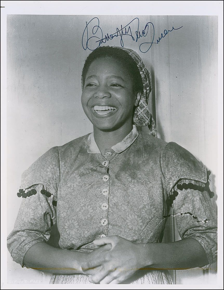 Glossy 8 x 10 photo of McQueen in her garb as Prissy from Gone With the Wind, signed in black felt tip. In fine condition, with adhesive remnants on the reverse.