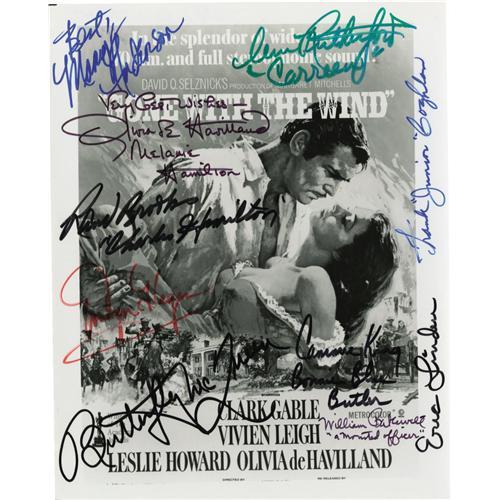 <B>"Gone With the Wind" Cast Signed Photo.</B></I> A b&w 8" x 10" promo photo featuring the poster art for the 1939 classic, signed by Olivia de Havilland, William Bakewell, Eric Linden, Ann Rutherford, Butterfly McQueen, and others. In Excellent condition. <I>Accompanied by LOA from PSA/DNA.</B></I><BR><BR><b>Shipping:</b> Flat Material, Small (<a target="_blank" href="http://www.heritageauctions.com/common/shipping.php">view shipping information</a>)