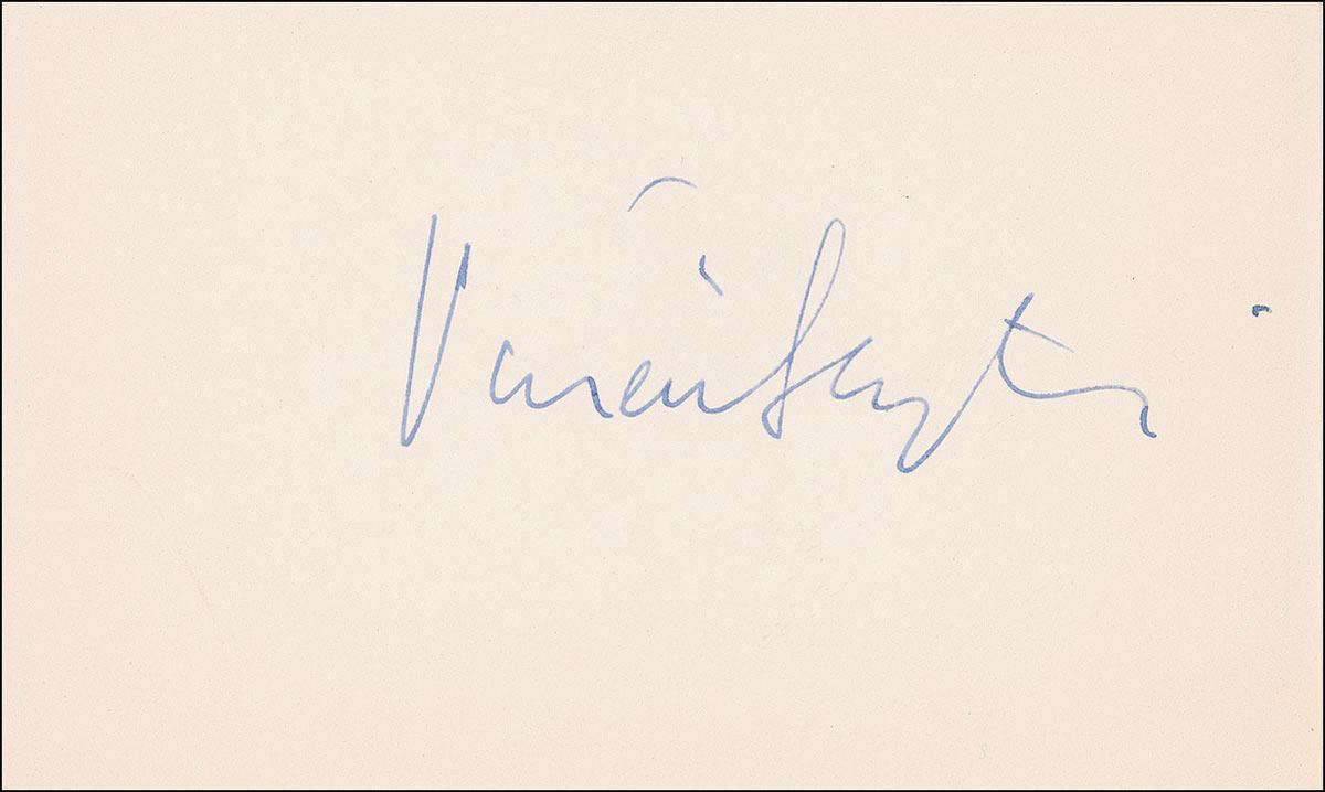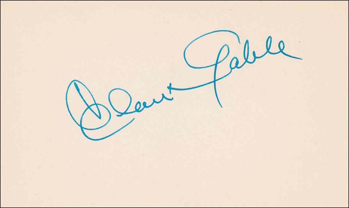 Fabulous vintage in-person ink signatures of Clark Gable and Vivien Leigh on individual off-white cards. In very fine condition. Accompanied by a gorgeous, high-quality unsigned 11 x 14 color satin finish photo of Rhett and Scarlett perfect for creating an attractive display piece. As fine, clean examples as you will find.