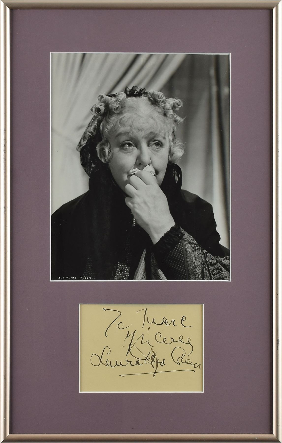 Actress (1879–1942) best known for her role as Aunt Pitty Pat in Gone with the Wind. Vintage fountain pen signature and inscription, "To Marc, Sincerely, Laura Hope Crews,” on an off-white 5 x 3.5 album page. Nicely matted and framed with a portrait to an overall size of 11 x 18. In fine condition.