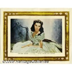 <B>Gone With the Wind (MGM, 1939)</B></I> Lobby Card (11" X 14"). Vivien Leigh appears in this stunning "road show" lobby card as the immortal Scarlett O'Hara. Leigh was a last minute casting for the role as producer David O. Selznick had literally auditioned almost every starlet in Hollywood for the part and wasn't happy with any of them. During the "Burning of Atlanta" sequence, Laurence Olivier brought his young wife to watch the filming, and Selznick discovered his Scarlett. This lobby is in amazing condition, appearing almost unused and would certainly grade in Near Mint condition.