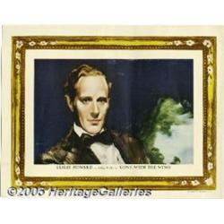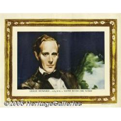 <B>Gone With the Wind (MGM, 1939)</B></I> Lobby Card (11" X 14"). This "road show" lobby card features the portrait of Leslie Howard as the southern gentleman, Ashley Wilkes, from Margaret Mitchell's story of the old south. This portrait lobby is in beautiful condition, showing the most minor imperfection to the upper right corner in the form of 2 slight corner creases, and a slight "warp" in the center of the black background. Very Fine.