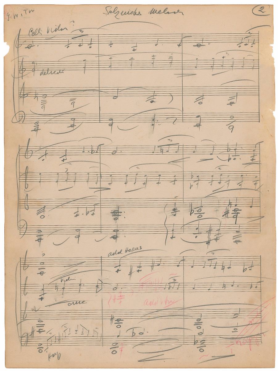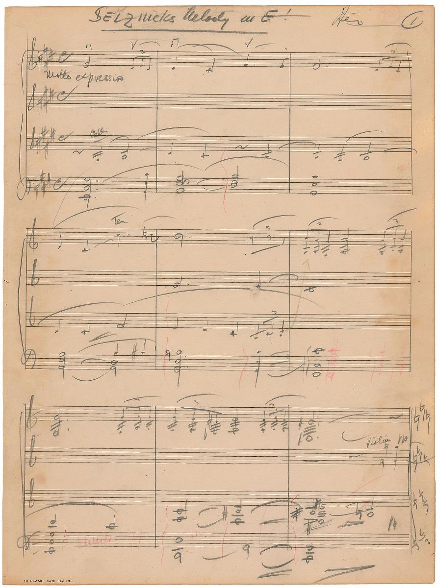 Rare handwritten musical manuscript in pencil, unsigned, two pages, 10.25 x 13.75, no date but circa 1939. Steiner’s handwritten working drafts of music for the score to Gone with the Wind, the first page headed “Selznick’s Melody in E” and the second headed “G.W.T.W. Selznick’s Melody.” In fine condition, with light soiling, toned edges, and a few small chips to the second page. From the noted Gone with the Wind collection of James L. Tumblin. Steiner was one of the greatest score composers in the history of film, with other films to his credit including King Kong and Casablanca. His Gone with the Wind theme is one of the most recognizable in all of cinema, and drafts of his music associated with this important film are exceedingly rare and of the utmost desirability.