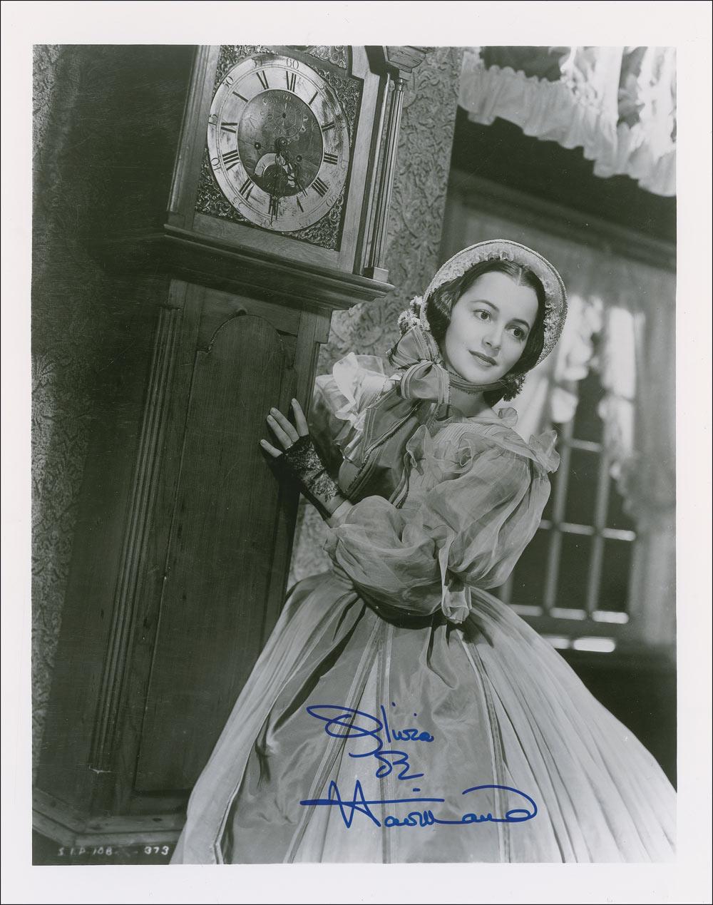 Glossy 8 x 10 photo of de Havilland in her most famous role as Melaine from Gone With the Wind, signed in blue felt tip. In very fine condition.