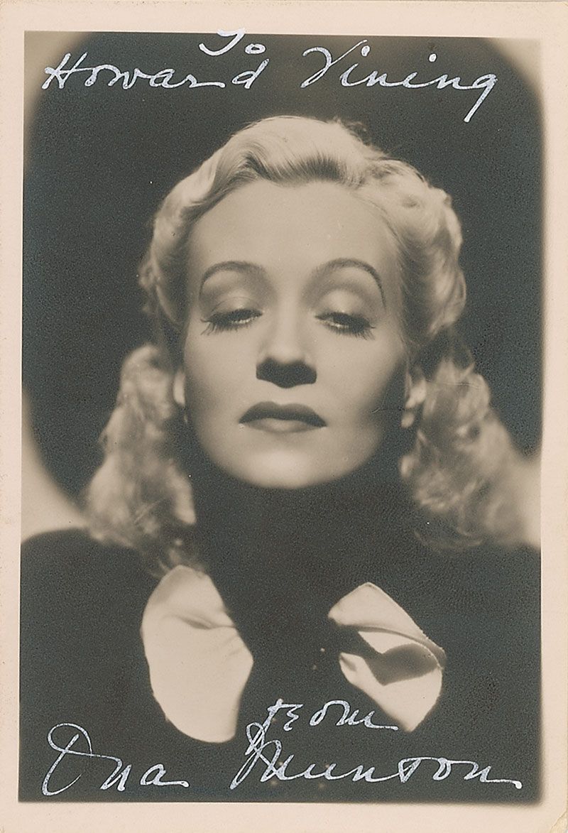 Vintage matte-finish 3.5 x 5 photo, signed and inscribed in white ink, “To Howard Vining, from Ona Munson.” In fine condition, with silvering to dark areas of the image.