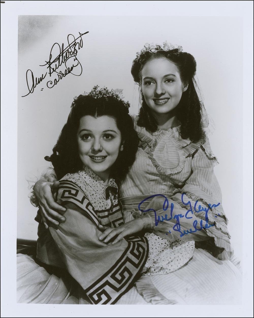 Glossy 8 x 10 photo of Rutherford and Keyes as they appeared in Gone With the Wind, signed in blue felt tip by Evelyn Keyes and in black felt tip by Ann Rutherford, with both actresses adding their respective character names. In fine condition.