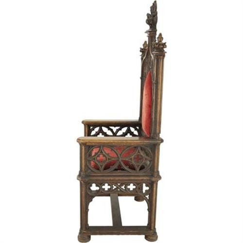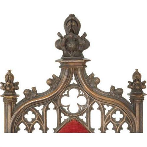 <B><I>Gone With the Wind</B></I></B></I> <B>Screen-Used Arm Chair.</B></I> Rhett Butler's infamous declaration, "Frankly, my dear, I don't give a damn," is the number one movie line of all time according to the American Film Institute. When Rhett delivered those final words to Scarlett O'Hara in the 1939 epic <I>Gone With the Wind,</B></I> the two were flanked by a pair of sumptuous chairs on either side of the doorway to the Butler home. The arm chairs were also used as head chairs in the dining room sequences. Heritage is proud to offer one from that set of screen-used chairs from the beloved epic. Embodying the rich massive style of Rhett Butler's Reconstruction-era estate, the arm chair measures 63.5" x 26.25" x 22" and is in Very Fine condition with some nicking, minor decorative loss, and separating of decorative joints. Originally acquired from the historic MGM auction of props and wardrobe, the arm chair was subsequently displayed in the rare book store Heritage Book Shop (not affiliated with Heritage Auctions) in West Hollywood. Accompanying the lot is a <I>New York Times</B></I> article on Heritage Book Shop referencing the chair and its inclusion in <I>Gone With the Wind,</B></I> as well as images of the piece in the film. Hard to imagine a more desirable artifact from the classic film, and this one directly reflects the iconic imagery of <I>Gone With the Wind</B></I> and Rhett's infamous last words to Scarlett. An incredible piece of film history.<BR><BR><b>Shipping:</b> Requires 3rd Party Shipping (<a target="_blank" href="http://www.heritageauctions.com/common/shipping.php">view shipping information</a>)