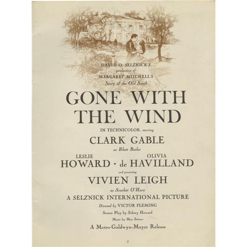 <B>"Gone With the Wind" Vintage Program Book.</B></I> Vintage 24-page souvenir program book for the 1938 feature film, in Fine to Very Fine condition with some mild wear and tanning, and mild to moderate soiling to the front cover.<BR><BR><b>Shipping:</b> Flat Material, Small (<a target="_blank" href="http://www.heritageauctions.com/common/shipping.php">view shipping information</a>)