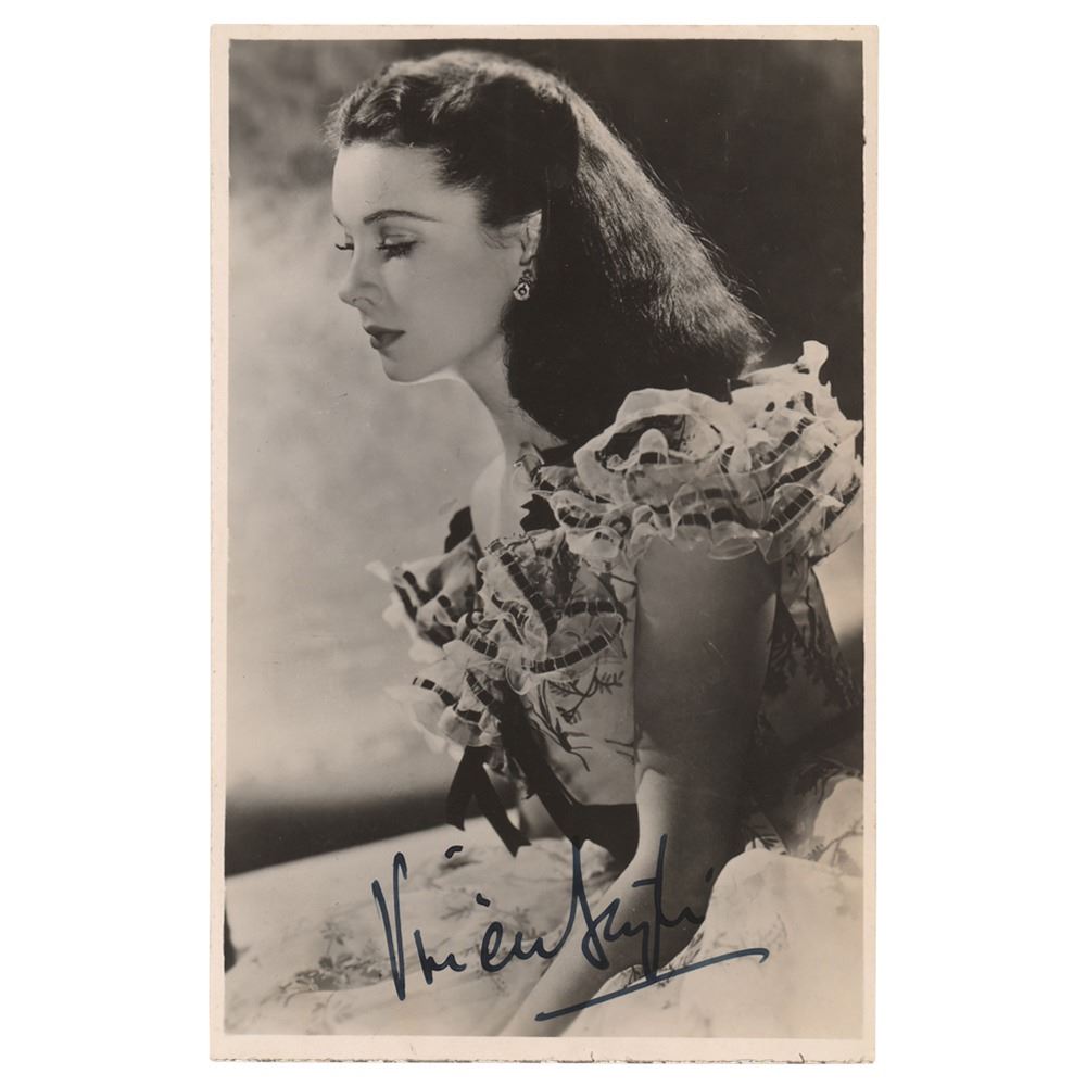 Vintage pearl-finish 3.5 x 5.5 portrait photo of Vivien Leigh as Scarlett O'Hara in the classic 1939 film Gone with the Wind, signed in fountain pen. In fine condition.