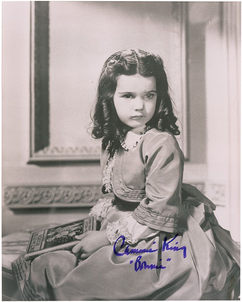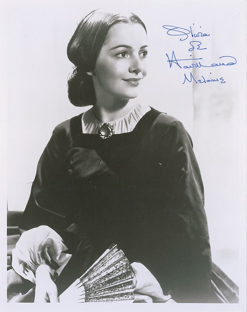 Glossy 8 x 10 photo of de Havilland from the film, signed in blue felt tip, “Olivia de Havilland, Melanie”; and a satin-finish 8 x 10 photo of Cammie King from the film, signed in blue felt tip, “Cammie King ‘Bonnie.’” In fine condition.