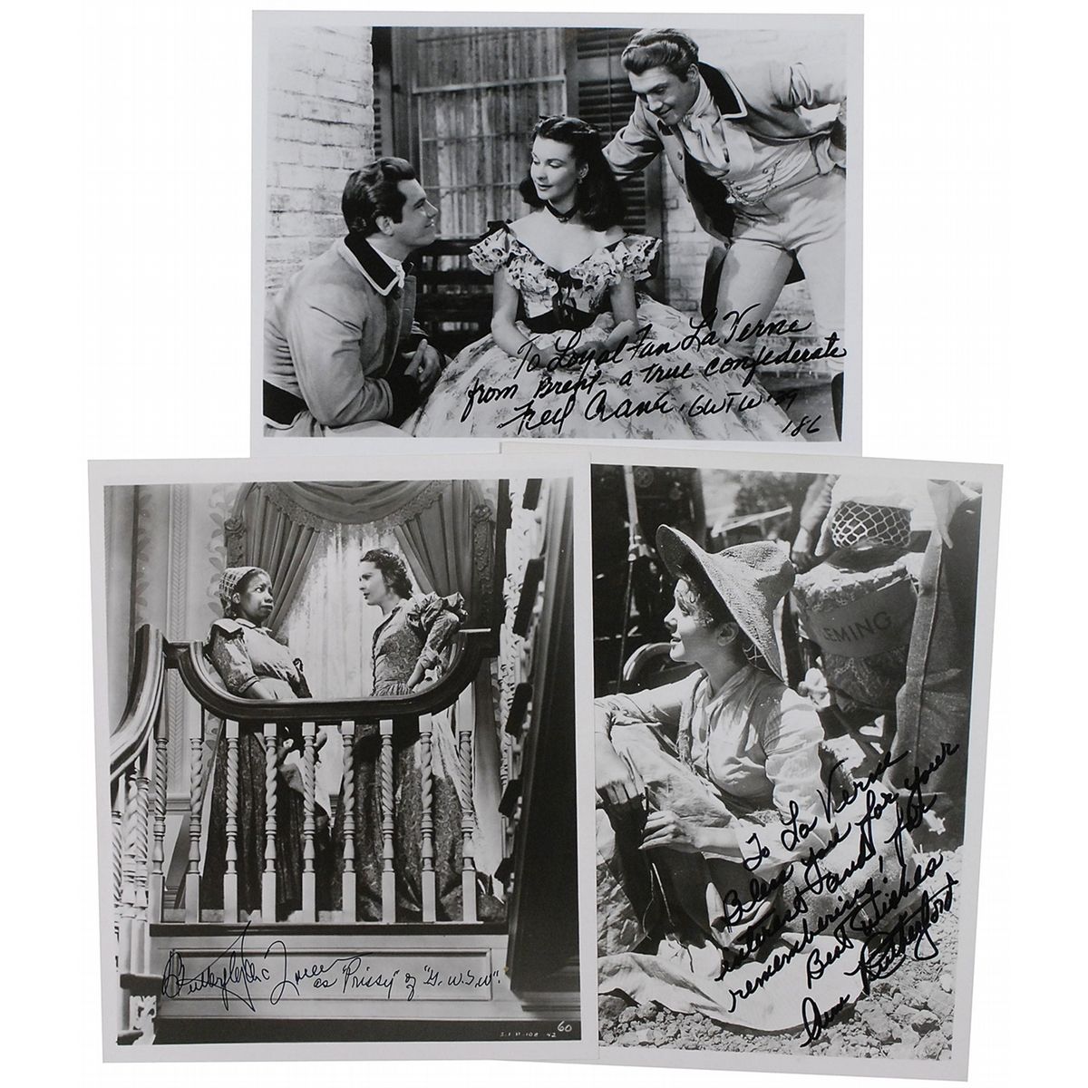 Three glossy photos of various characters from Gone With the Wind, 8 x 10 and 10 x 8, each signed in black felt tip by the actor or actress pictured. Signers are: Butterfly McQueen, Ann Rutherford (ins), and Fred Crane (ins). In overall fine condition.