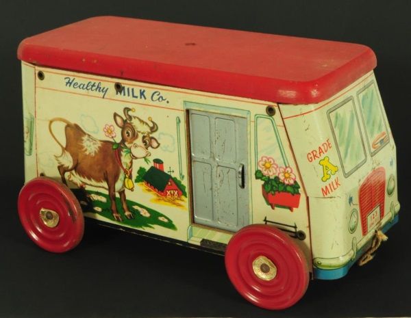 Gong Bell Toys. Van measures 7-3/4" tall, 13 1/2" long, 7 1/2" wide.