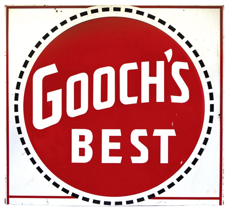 Gooch's Best flour sign, self-framed embossed metal, by Stout Sign Co.-St. Louis, VG cond, 42"H x 26