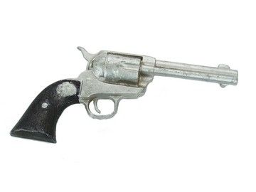 Props of any kind from third in the "No Name" trilogy, Sergio Leone's masterpiece "The Good, The Bad, and the Ugly" are rare finds indeed. Since so much of the film was shot in the desolate areas of Spain's deserts (including Cabo de Gata, Almeria and Andalucia), much of the props and costumes were simply discarded, rather then being packed up and shipped back to Italy. This is an original metal prop colt pistol used by one of the background players. (Approx. 10" x 5" x 1.5")