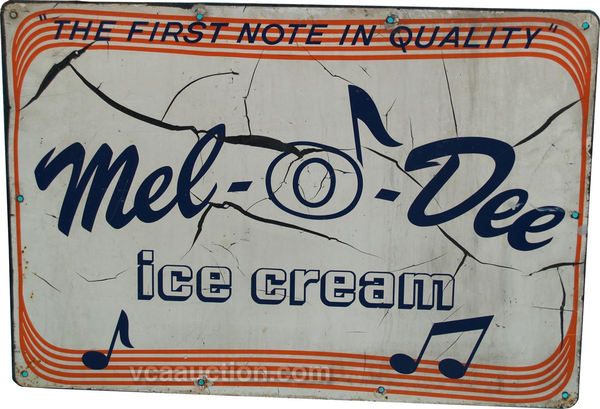 Good Humor Ice Cream Double Sided Porcelain Sign - 18" x 26" one side shows Mel-O-Dee Ice Cream. Has minor touch-up.