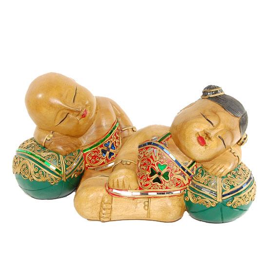 Excellent handcarved rubber wood pair used to bring good luck, wealth and happiness, 16" each