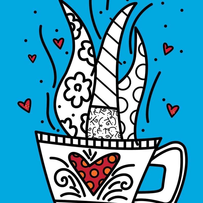 "Good Morning (Blue)" is a limited edition giclee on canvas with diamon dust embellishments by Romero Britto. The piece is numbered, hand signed by the artist, and authenticated with the official Britto hologram. Measures approximately: 12" x 9".
