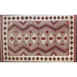 Good Navajo rug, c. 1920, central diamond pattern in gray, red and black on a cream field, 71” x 114”, excellent condition