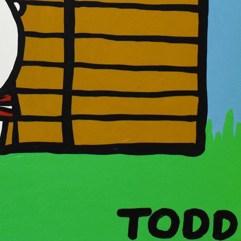 "Good Pets" is an original acrylic painting on canvas by Todd Goldman, hand signed by the artist. This piece comes gallery wrapped. Includes Letter of Authenticity. Measures approx. 48" x 48" (image). Please note: There is wear on the corners and edges of this piece. This piece is available for free pickup in Los Angeles - contact for more info.