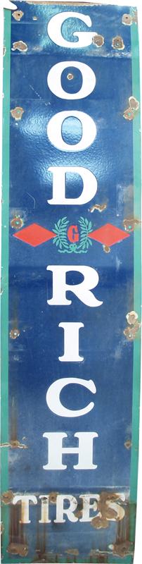 "Good Rich Tires" Porcelain Sign w/ lots of bullet holes - 18" x 76"