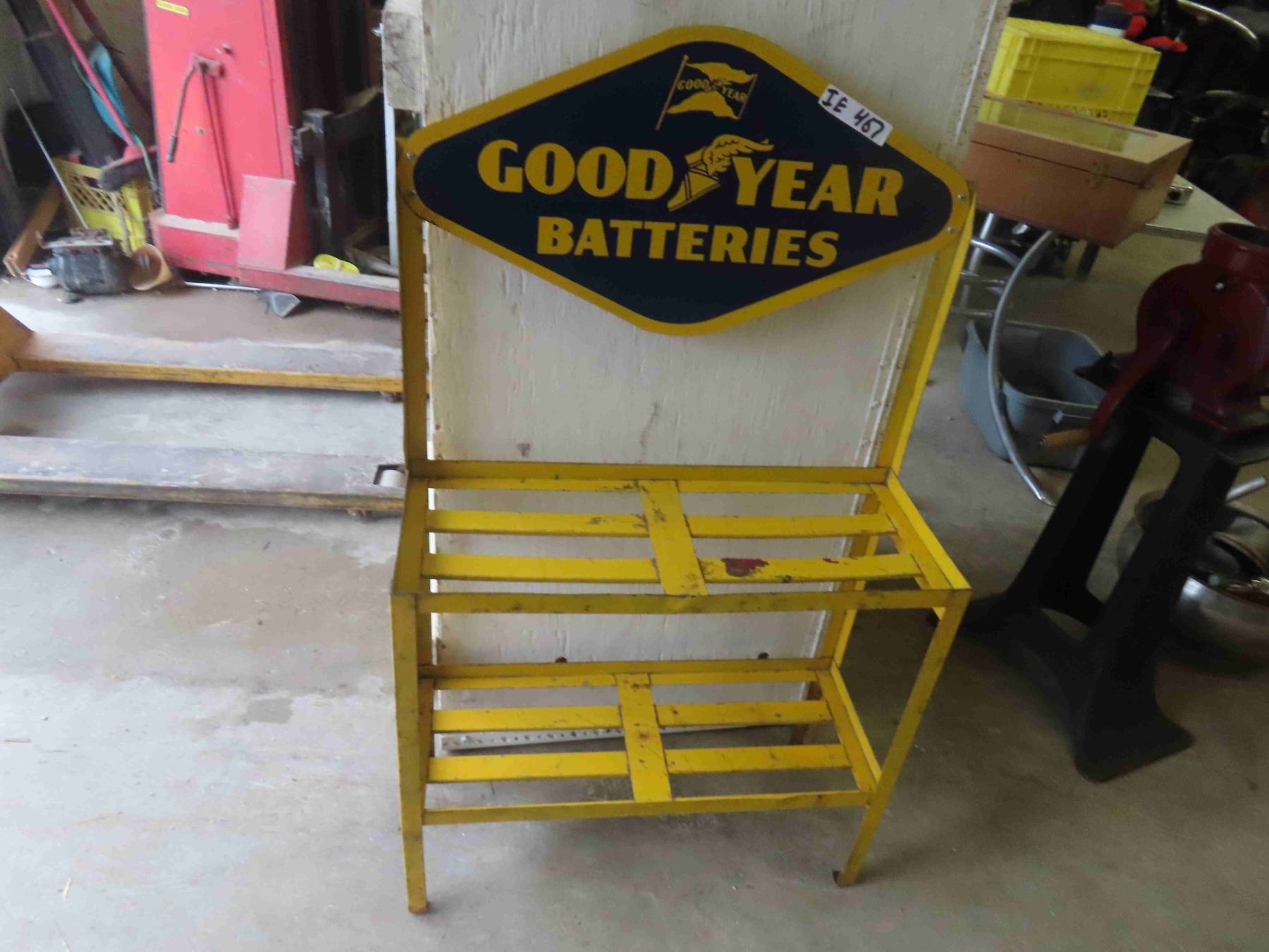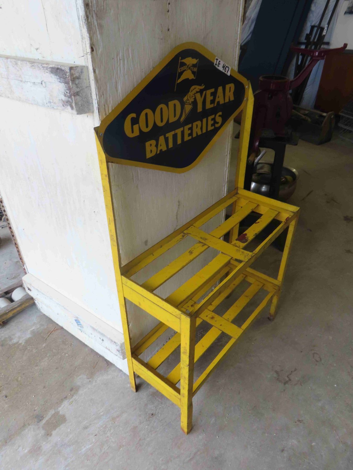 Good Year Batteries Rack with Sign - Sign Size Up to 25 1/2'' x 13'' , Rack Size 38'' x 10'' x 26''