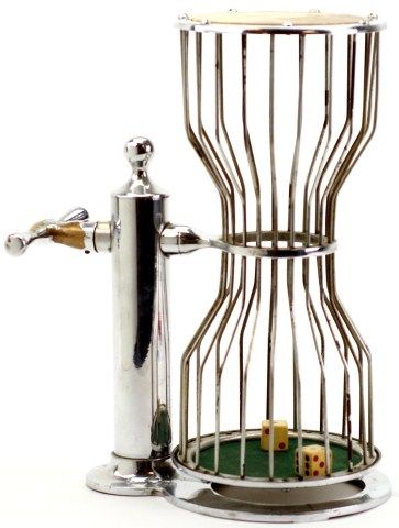Good early counter top Chuck-A-Luck with original dice, 11" tall.