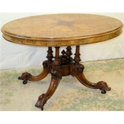Good quality Victorian figured walnut oval tilt-top loo table, supported by 4...
