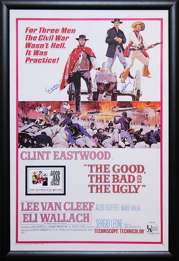 "The Good, the Bad & the Ugly" Classic!! Signed movie poster by Clint Eastwood and Eli Wallach. This item comes with a Certificate of Authenticity from a third party authenticator. This Certification of Authenticity does not imply that the item will be certified by any other rival authentication companies. The accompanied certification is the only certification the auction company can confirm. These items are being sold as collectable pieces and there is no guarantee that this item can be resold on any online marketplace. Each of these companies has their own policies and politics.