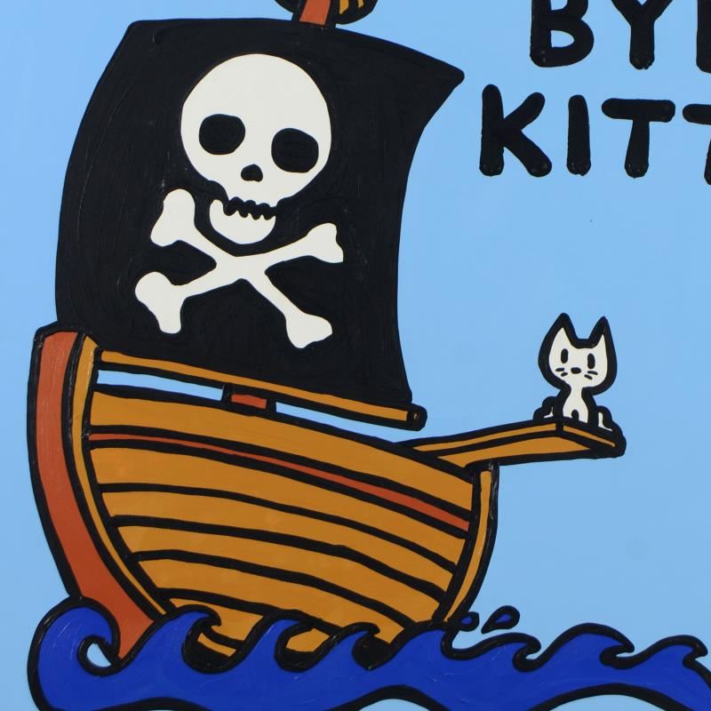 "Goodbye Kitty" is an original acrylic painting on canvas by Todd Goldman, hand signed by the artist. This piece comes gallery wrapped. Includes Certificate of Authenticity. Measures approx. 36" x 36" (image). There is minor wear on the corners and edges of this piece.