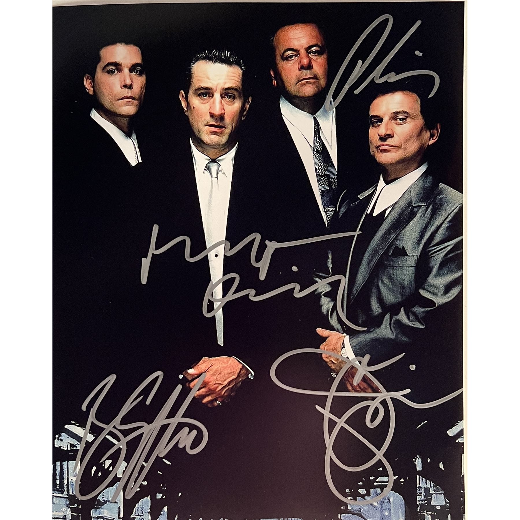 Goodfellas cast signed photo autographed by Ray Liotta, Robert DeNiro, Joe Pesci and Paul Sorvino. 8x10 inches