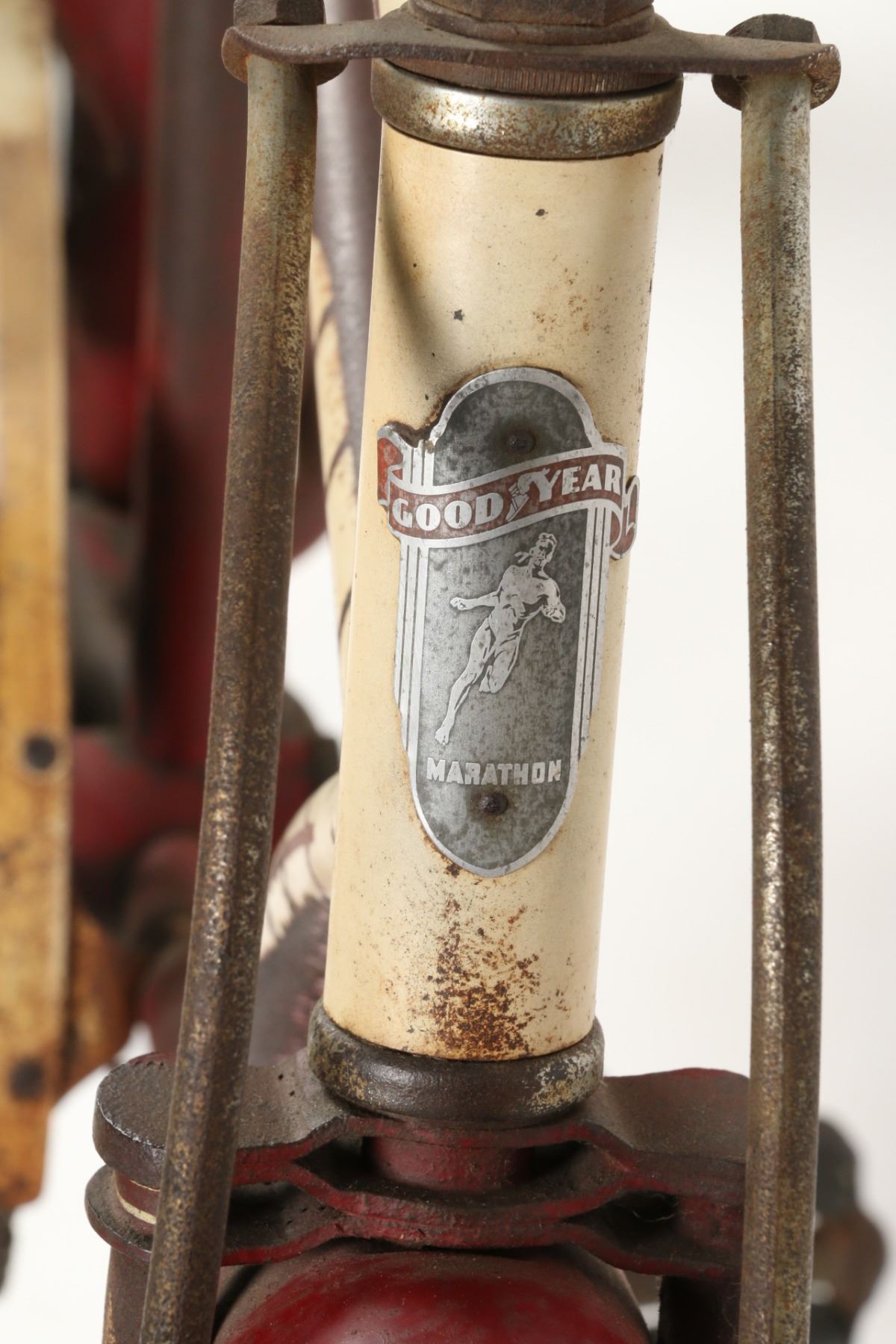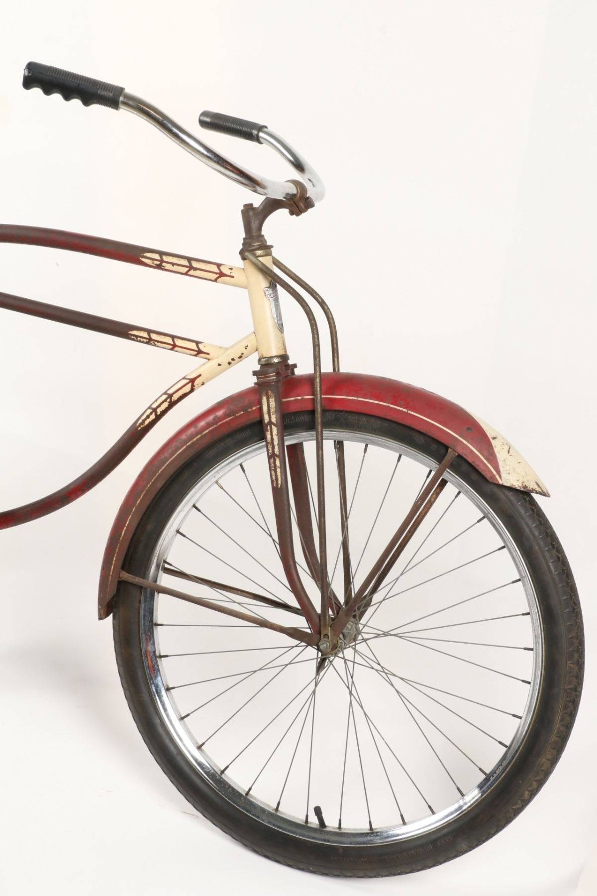 American. Marathon. Men’s. 33” x 66”. Untouched original. Mismatched rims. Retains original Goodyear “Double Eagle“ balloon tires. Front fender light not present. $200-300.