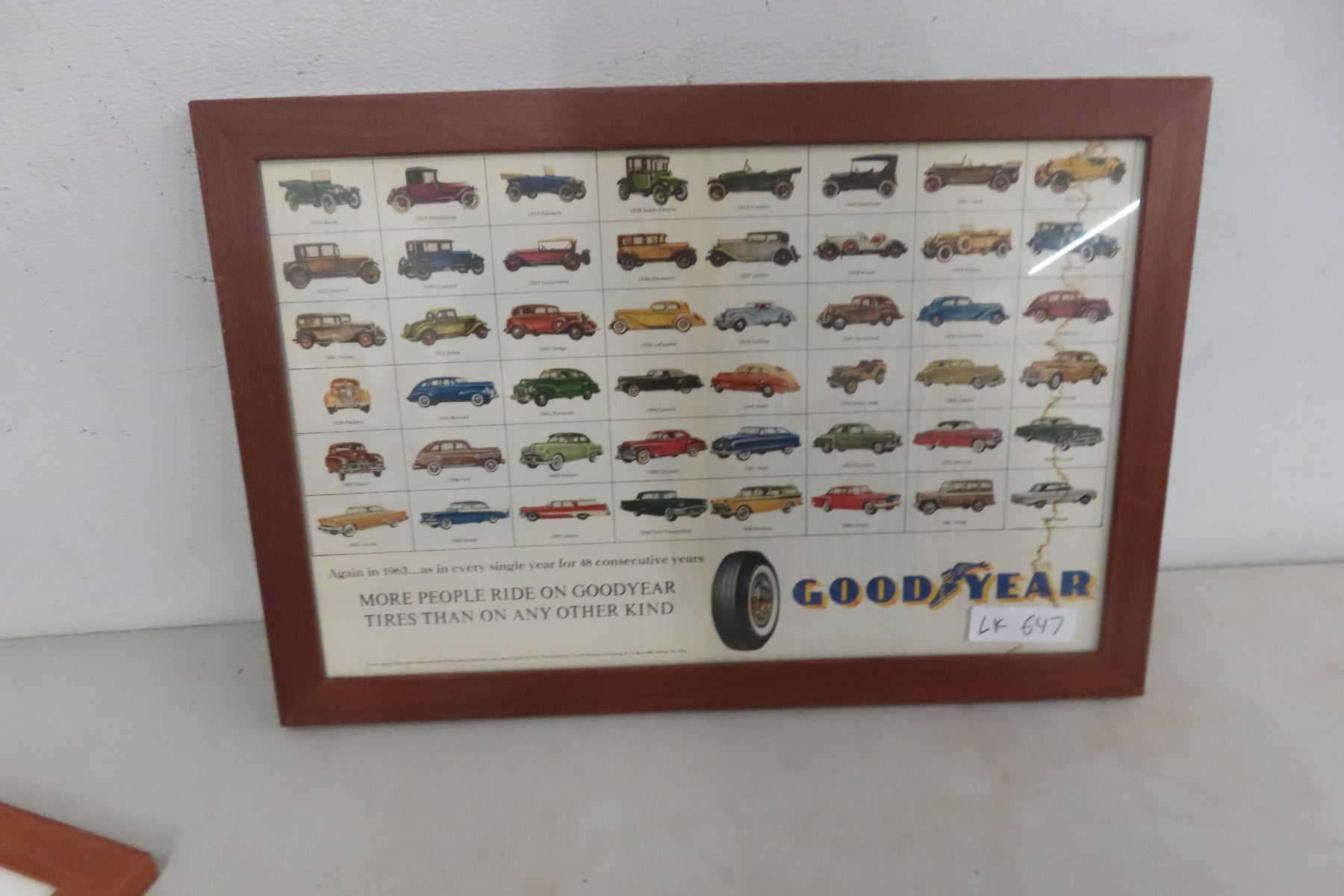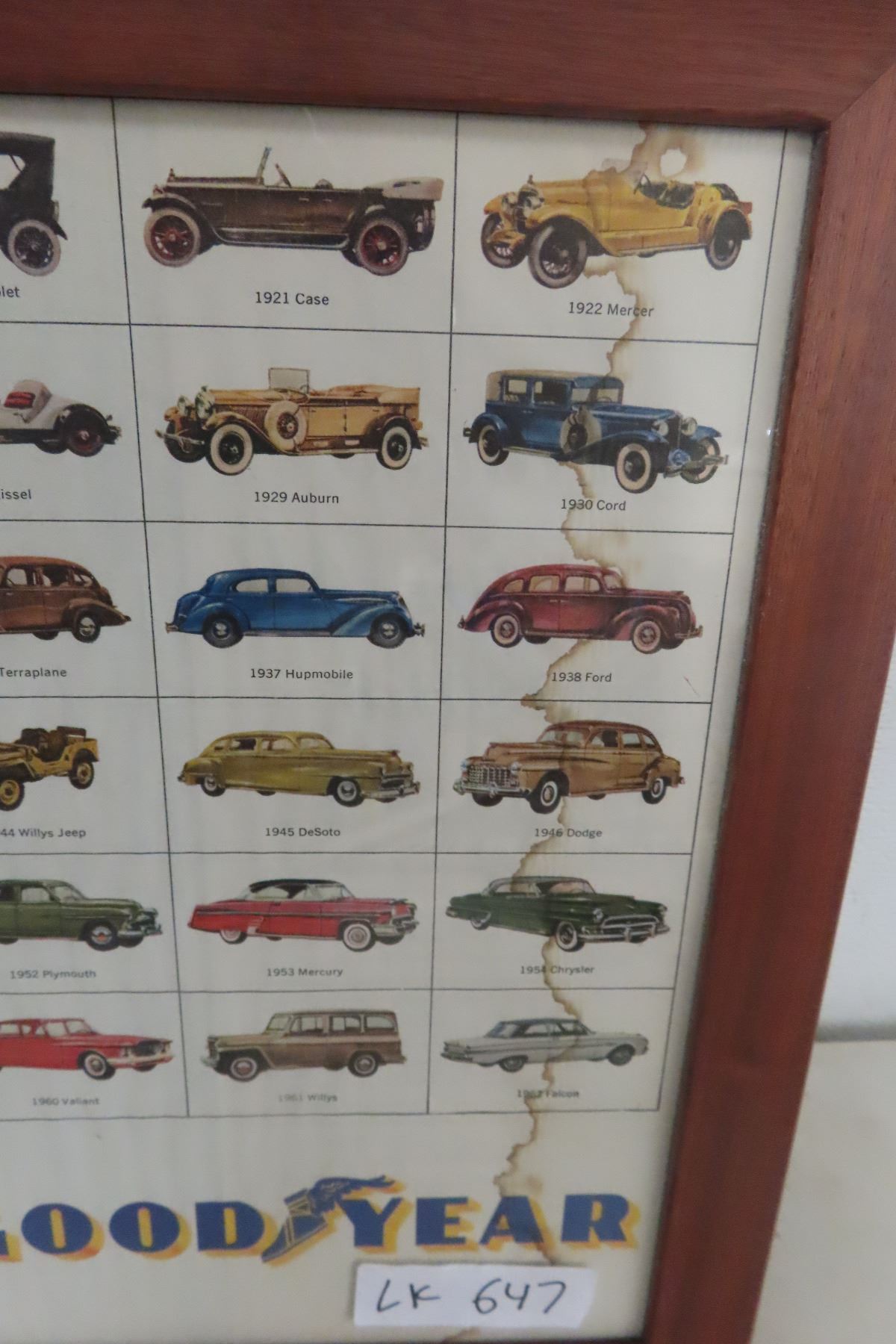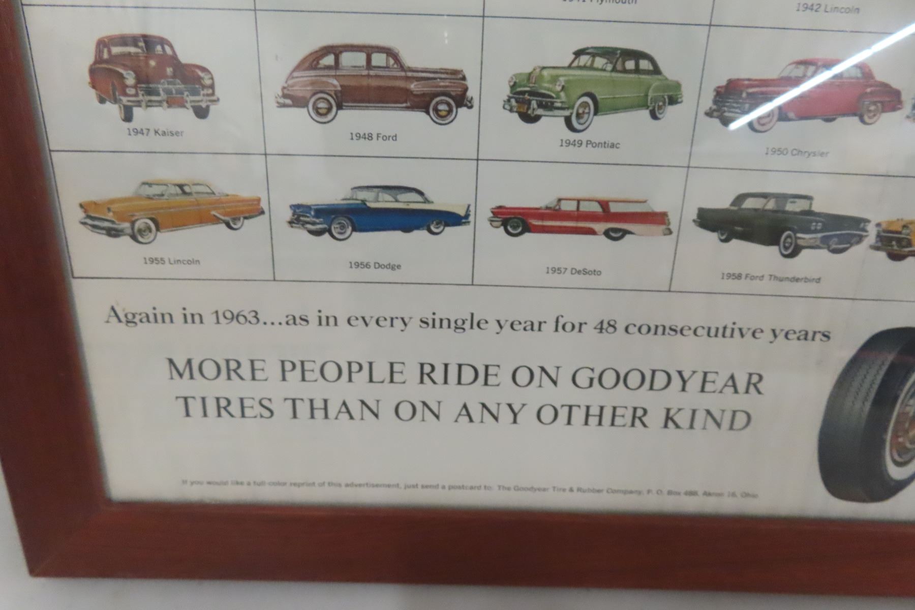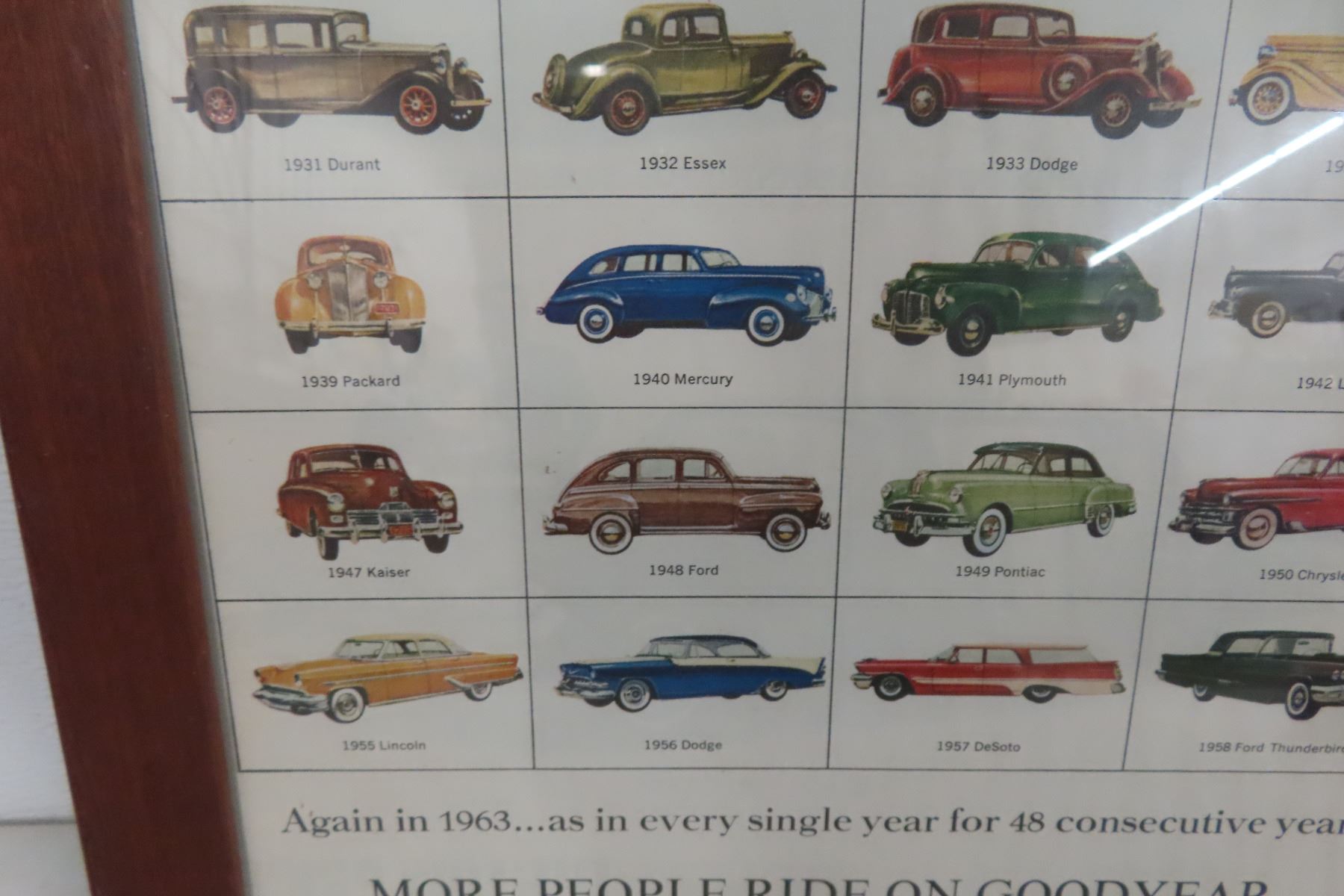 Goodyear Paper Advertisement in Frame with Cars from 1915-1962 15" x 22"
